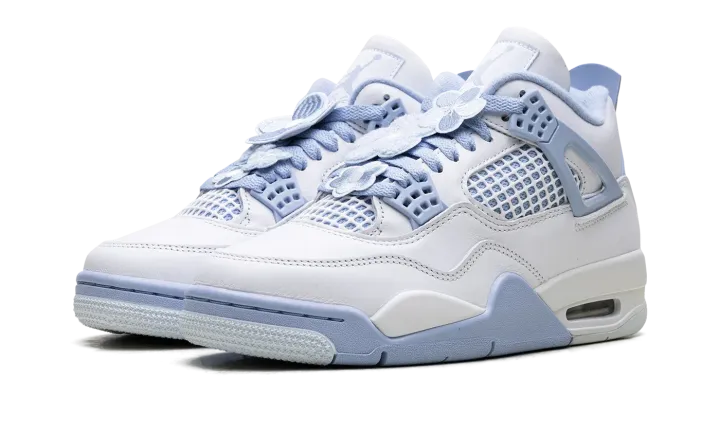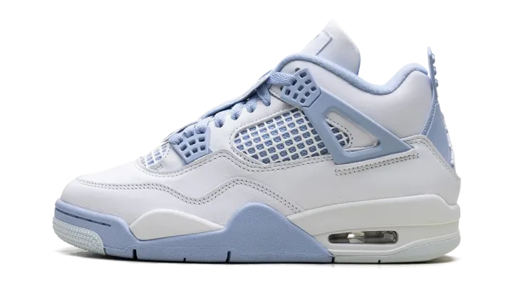 Step into a crisp, clean look with the Air Jordan 4 Wmns "Aluminum." This remarkable women's silhouette features a pristine white leather upper complemented by striking aluminum blue accents. Experience legendary comfort from its visible Air cushioning, seamlessly blending heritage design with a fresh, versatile aesthetic for everyday wear.