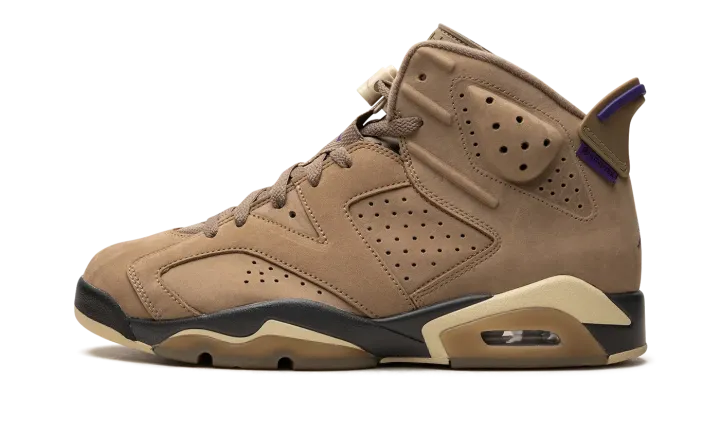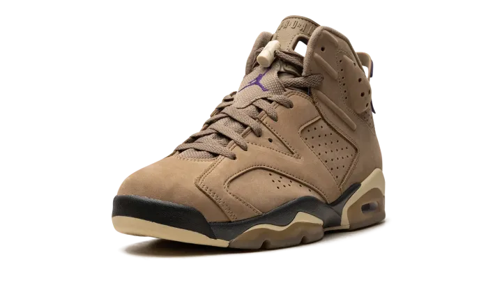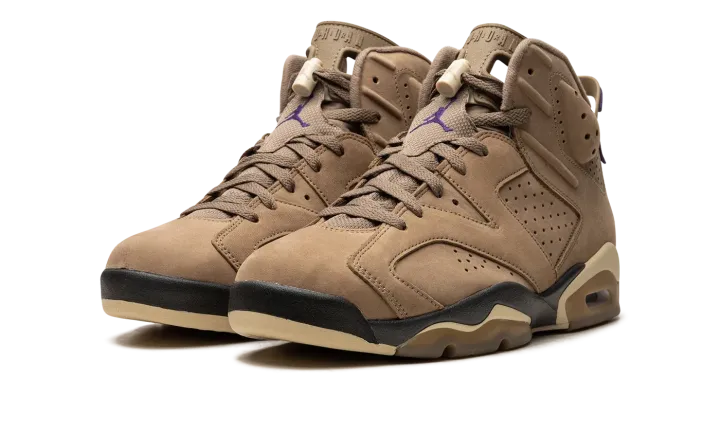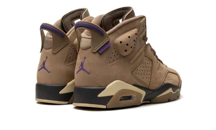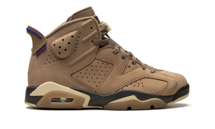 The Women's Air Jordan 6 Gore-Tex "Brown Kelp" is a women's-exclusive colorway of Michael Jordan's sixth signature shoe with a water-resistant construction. Designed to withstand inclement weather conditions, the Jordan 6 Gore-Tex in "Brown Kelp" features a Brown Kelp upper with a Gore-Tex membrane that is resistant to the elements. A Court Purple Jumpman is embroidered on the tongue. A "Gore-Tex" logo is seen on the lateral side of the heel. Team Gold accenting lands on the lace lock and on the Jumpman that's stitched onto the heel. Underfoot, the shoe is complete with a purple and tan midsole. Release date: November 29, 2023