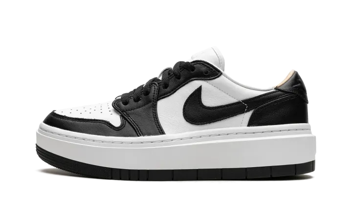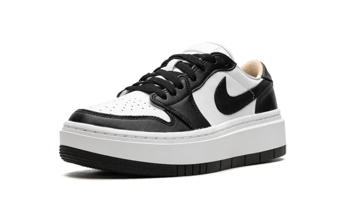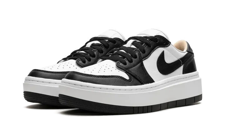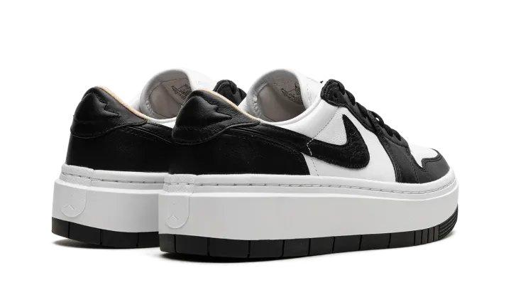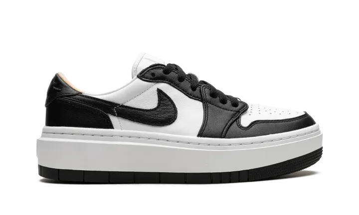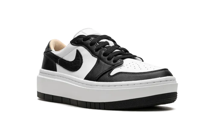 The Women's Air Jordan 1 Elevate Low "Panda" is a women's-exclusive colorway of the retro basketball shoe with a modified platform-style sole. The Jordan 1 Elevate Low updates the Jordan 1 Low with an oversized, white rubber midsole that adds height to the wearer while giving the shoe a modern look. The "Panda" features a white leather base with contrasting black leather overlays and Swoosh branding. A "bubble" style "Wings" logo. Underfoot, the platform rubber sole adds a boost in height. Release date: February 1, 2023