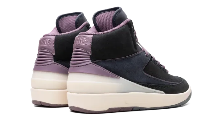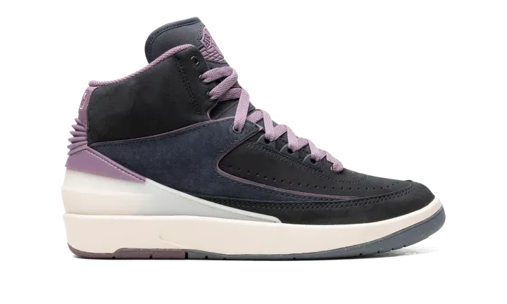 The Women's Air Jordan 2 "Mauve" is a women's-exclusive colorway of Michael Jordan's second signature shoe with a black-and-purple appearance. The classic sneaker features a black leather base with tonal textured leather overlays. Contrasting Mauve detailing appears on the side panels, heel counter, and inner lining. The hue is found on the "Wings" logo on the tongue, as well. A cream-colored midsole completes the clean look. Release date: November 2, 2023