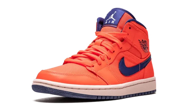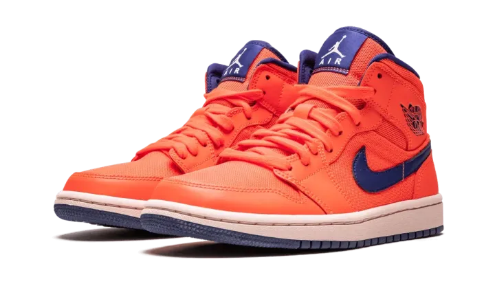 The Women's Air Jordan 1 Mid "Turf Orange" is a vibrant colorway for the classic mid-top Jordan 1 in women's sizing. The bold look features a bright orange mesh and synthetic leather upper with "Blue Void" accents throughout the upper. The midsole contrasts in Nike's "Sail" shade of white, while the blue hue is also utilized for the outsole. The Women's Air Jordan 1 Mid "Turf Orange" released exclusively in women's sizing in 2019.