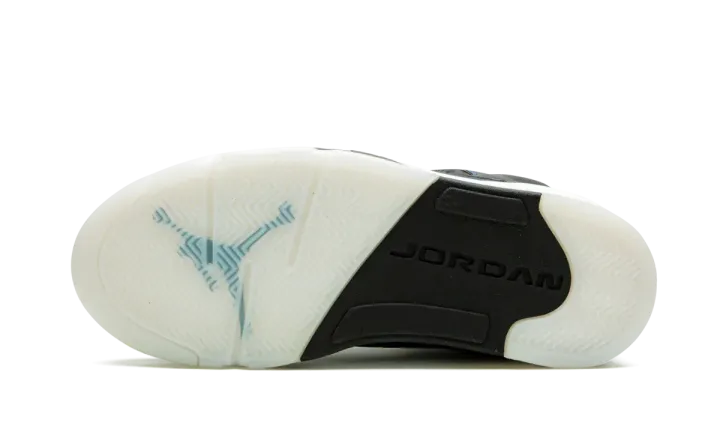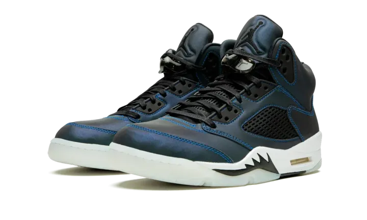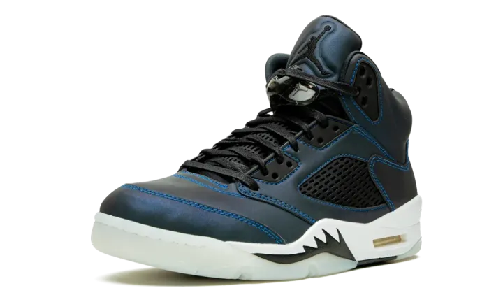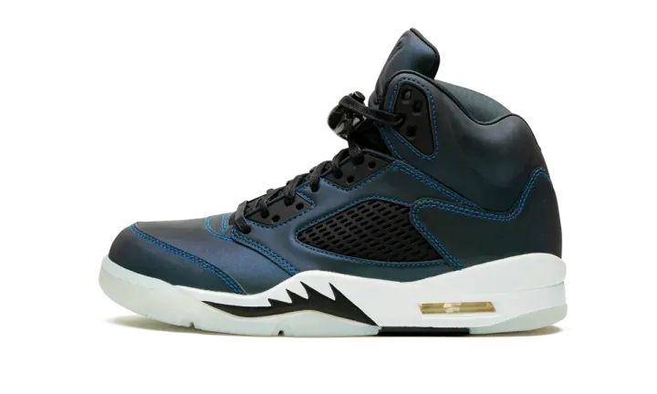 The Women's Air Jordan 5 "Oil Grey" is a women's-only colorway that celebrates the thirtieth anniversary of Michael Jordan's legendary fifth signature shoe. Emphasizing its newfound place in the lifestyle footwear space, Jordan Brand opts for an iridescent finish for the silhouette's upper that changes color when hit with light. Traditional Jordan 5 styling remains intact as black netting covers the mid-panel and a black lace toggle appears over the laces. The unmistakable "shark teeth" pattern appears on the midsole and embroidered Jumpman branding covers the heel. Release date: January 30, 2020