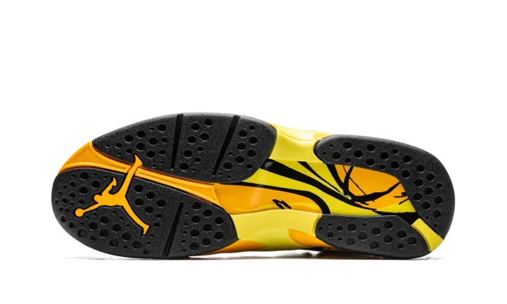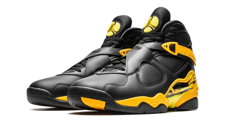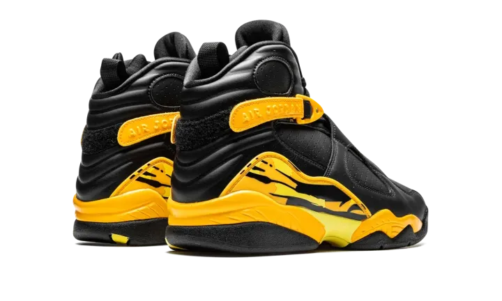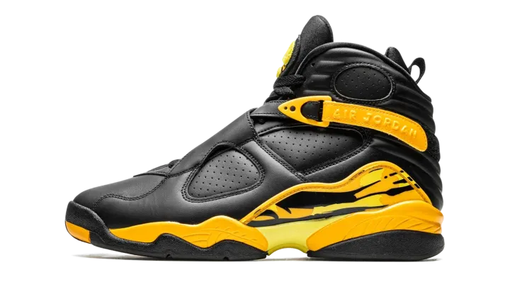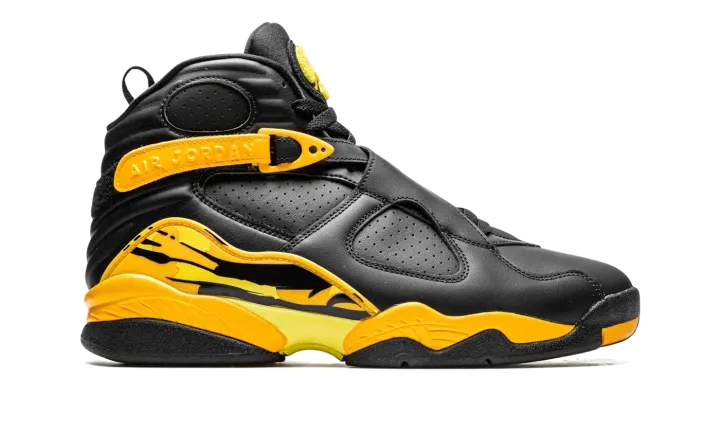 The Women's Air Jordan 8 "Taxi" is a women's colorway of the vintage basketball shoe with a black-and-yellow design that's inspired by New York City taxi cabs. Debuted on the Air Jordan 12 back in the day, the "Taxi" theme has been used on many Air Jordan shoes in a variety of styles over the years, and it enlivens Michael Jordan's eighth signature shoe in a spectacular way here. The upper is designed with a black leather construction with two criss-cross straps on the midfoot. The Jordan 8's signature heel counter is designed with a combination of black, Taxi, and Opti Yellow accents. Additional yellow detailing comes into play on the adjustable strap with tonal "Air Jordan" branding on both sides of the shoe, on the chenille tongue patch, and on the forefoot and heel of the midsole. Release date: July 29, 2022