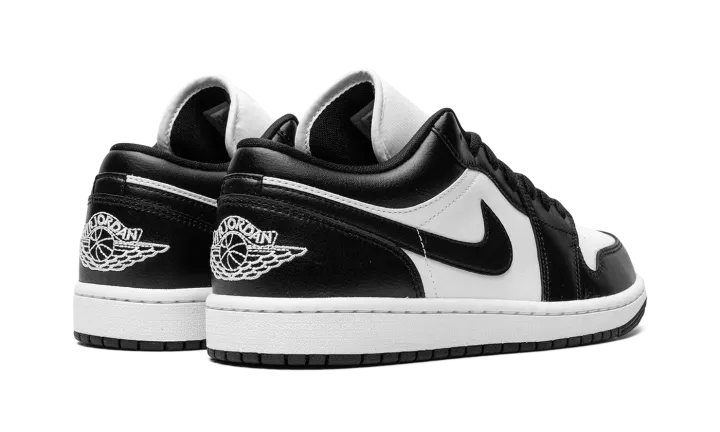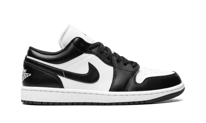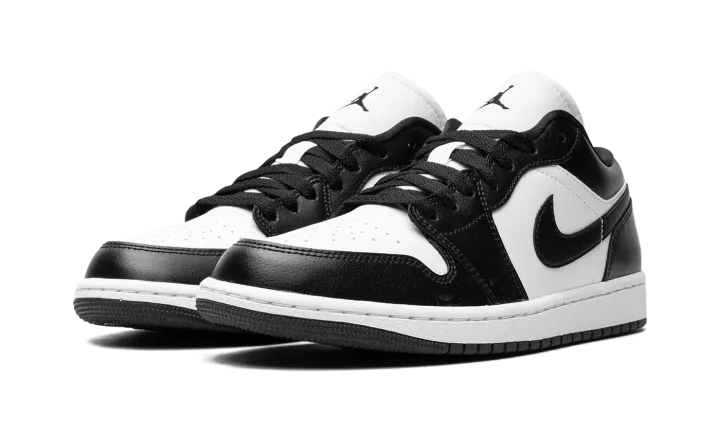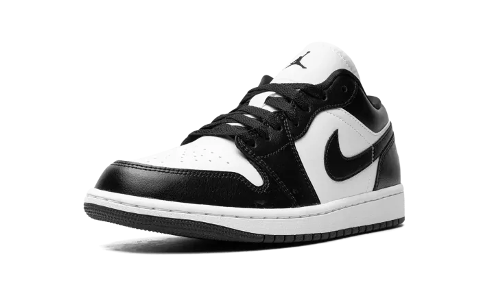 The Women's Air Jordan 1 Low "Panda" is a women's-exclusive version of the classic basketball shoe in the popular black-and-white colorway. The "Panda" colorway theme rose to fame on the Nike Dunk before it began appearing on other classic sneakers like the Jordan 1 Low. White leather appears on the shoe's base while black leather is found on the overlays and on the Swoosh. A white leather "Wings" logo is embroidered on the heel and a black Jumpman appears on the tongue. Release date: March 10, 2023