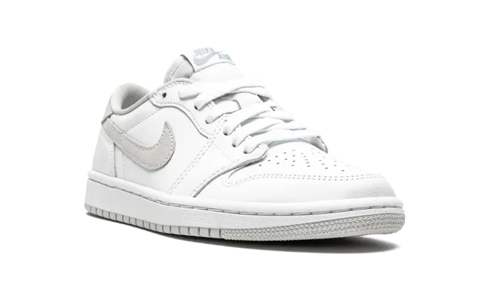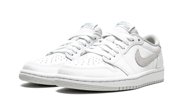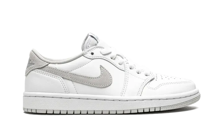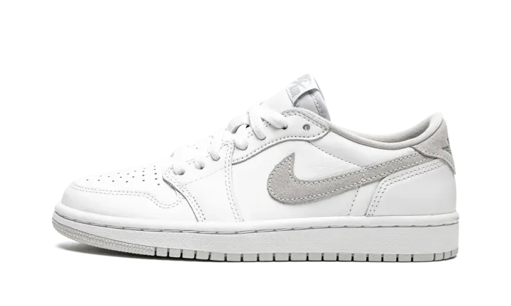 The Women's Air Jordan 1 Low OG "Neutral Grey" is the women's sizing of an original colorway of the low-top version of Michael Jordan's first signature shoe. The third-ever low-top "Neutral Grey" following the 1985 and 2015 Europe-exclusive releases, the June 2021 edition of the iconic design deviates from aforementioned styles in that it displays Neutral Grey-colored suede materials on the Swoosh and heel tab. Jordan Brand constructs the upper in a buttery cut of white leather. Grey "Nike Air" and Swoosh branding can be found on the white nylon tongue tag on the white nylon tongue. Release date: June 24, 2021