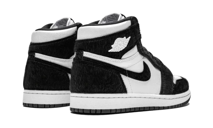 The women's Air Jordan 1 "Panda" is a special edition of the iconic silhouette designed just for women. The unique construction of the classic Jordan 1 High features a white leather base with black faux fur panels. The clean two-tone look is reminiscent of the original black and white Air Jordan 1 colorway from 1985, with the furry construction putting a new twist on the OG look. The shoe is finished with metal Air Jordan "Wings" logos on each ankle in white. Each pair also comes with black and white shoelaces. The women's Air Jordan 1 "Panda" released on May 10, 2019.