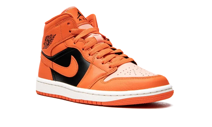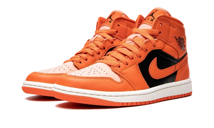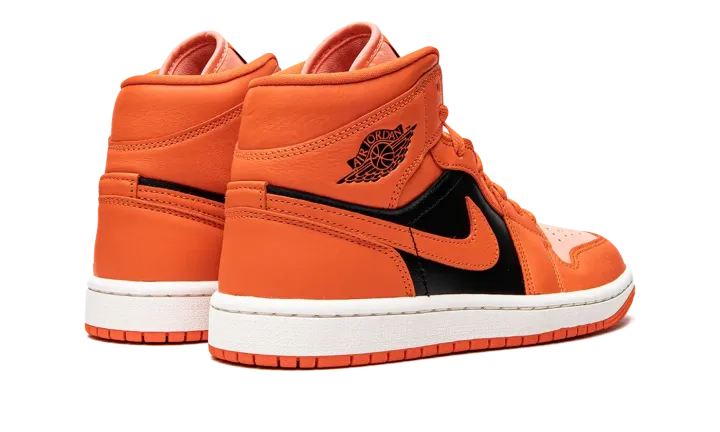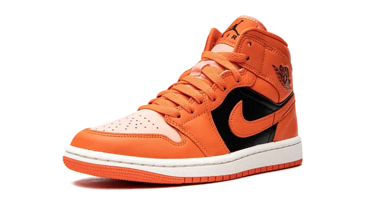 The Women's Air Jordan 1 Mid "Orange/Black" is a Halloween-esque colorway made exclusively in women's sizing. The attention-seeking "Orange/Black" Jordan 1 Mid is equipped with two colors commonly associated with the spooky holiday, orange and black, and is also a descendant of the model's beloved "Shattered Backboard" theme that also employs the same color scheme. Orange leather is found on the toe cap, forefoot, eyelets, collar, heel, and Swoosh. A light orange suede textile is found on the perforated toe. Contrasting black leather is located on the mid-panel, and the "Wings" logo on the collar.