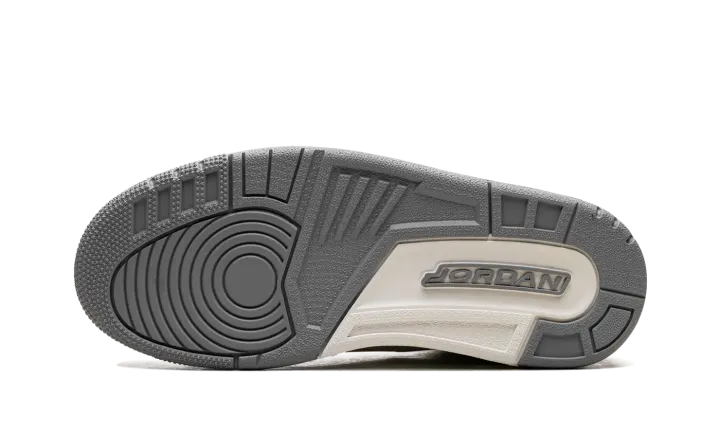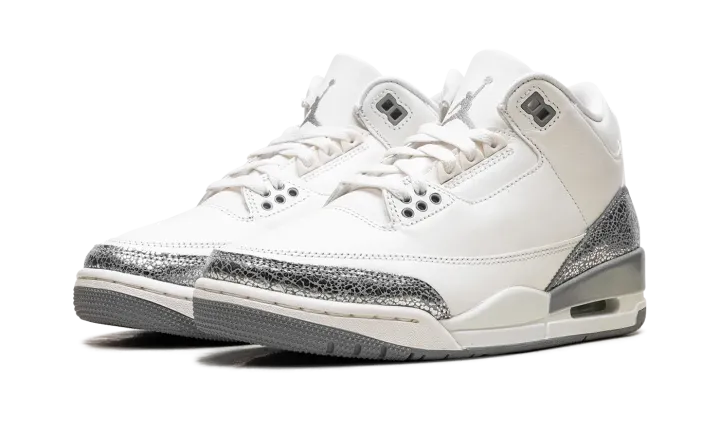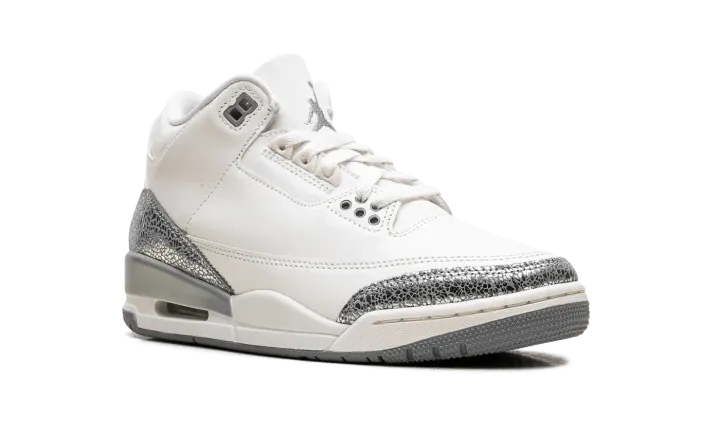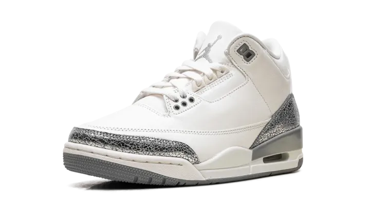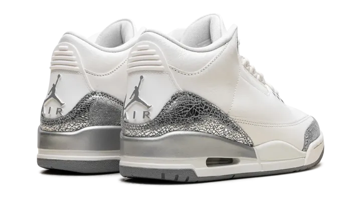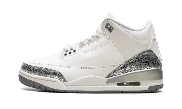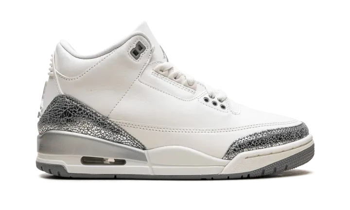 The Air Jordan 3 WMNS "Sail Cement Grey" is a women's colorway of Michael Jordan's third signature shoe. This AJ3 has unique details around the toe and heel where the Jordan 3's traditional elephant print panels are done in a shiny metallic silver that makes these women's Jordans really pop.