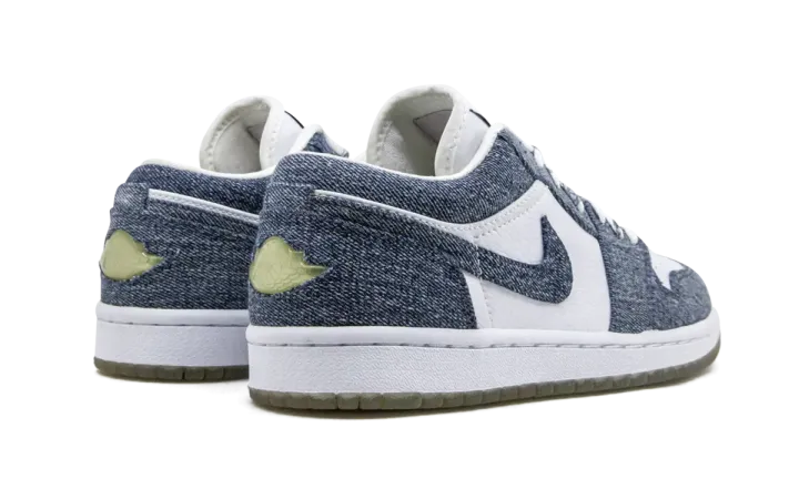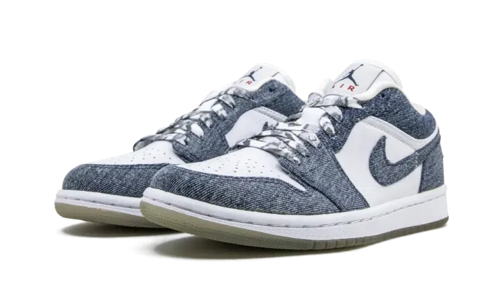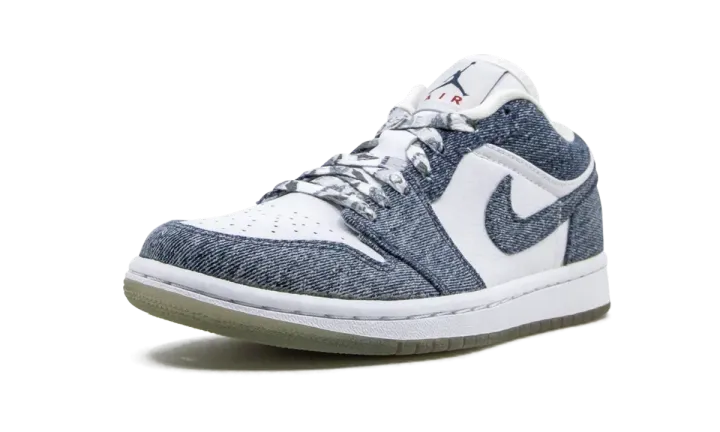 The Air Jordan 1 Retro Low gets a women-centric design with denim accenting. This low-top version of the iconic Air Jordan model is upgraded as white leather maintains a clean base for acid-washed denim overlays and a special denim Swoosh to shine as the highlight of the shoe. The patterned laces coordinate with the blue jean aesthetic, while a clear plastic Air Jordan Wings logo hits the heel and the Jumpman logo on the tongue is clean in black and red. Underfoot are a white midsole and translucent rubber bottom.