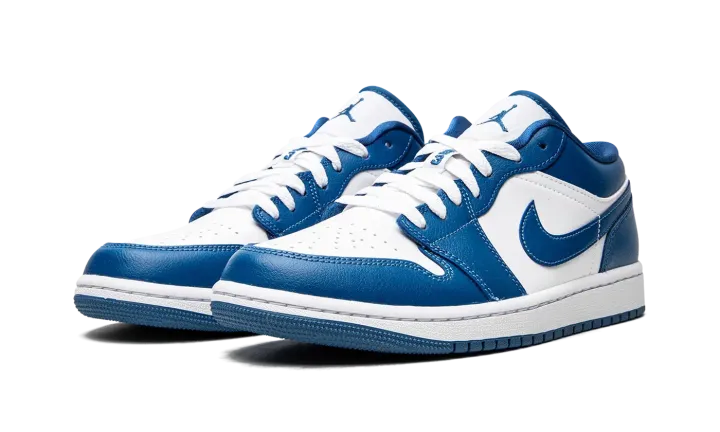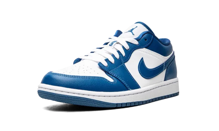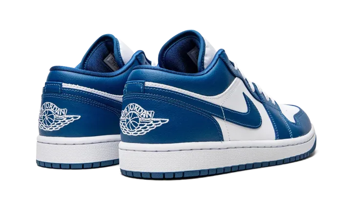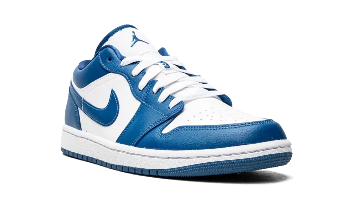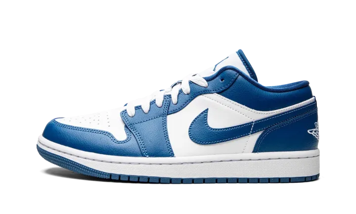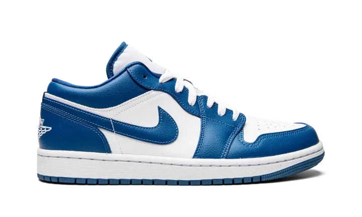 The Women's Air Jordan 1 Low "Marina Blue" is a women's-exclusive colorway of the retro basketball shoe designed in a versatile, two-tone white-and-blue design. An April 2022 release by Jordan Brand, the Jordan 1 Low in "Marina Blue" is as versatile as any colorway of the classic sneaker, featuring a white leather base with contrasting Marina Blue leather overlays and Swoosh branding. A white "Wings" logo is embroidered onto the heel. A Marina Blue Jumpman finds its way on the top of the white nylon tongue. Michael Jordan's "23" jersey number is found in blue on the lace overlay. Release date: April 5, 2022