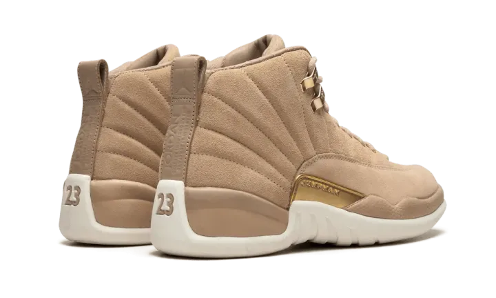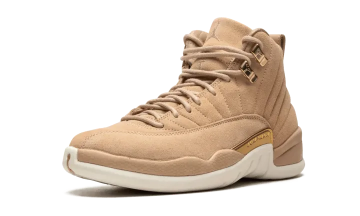 Nike gives the women's Air Jordan 12 Retro a style-savvy design update. The vachetta tan upper features metallic gold accents for a bold yet feminine touch. Extra cushioning along the heel and tongue ensure comfort. Gold eyelets elevate the silhouette and are contrasted by a white rubber midsole.