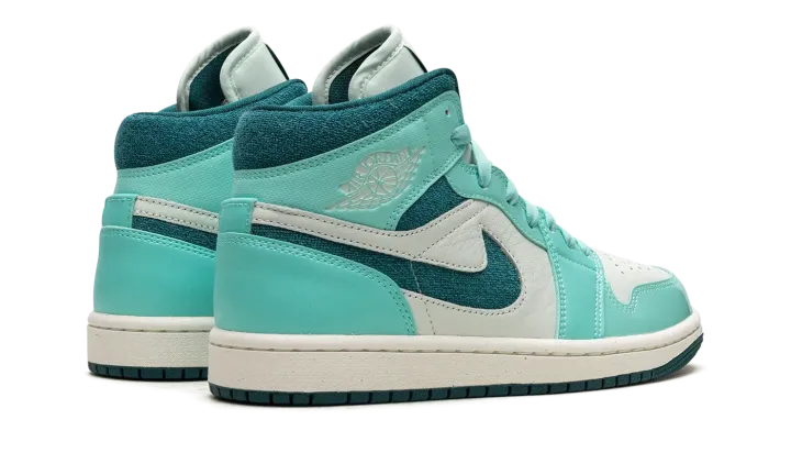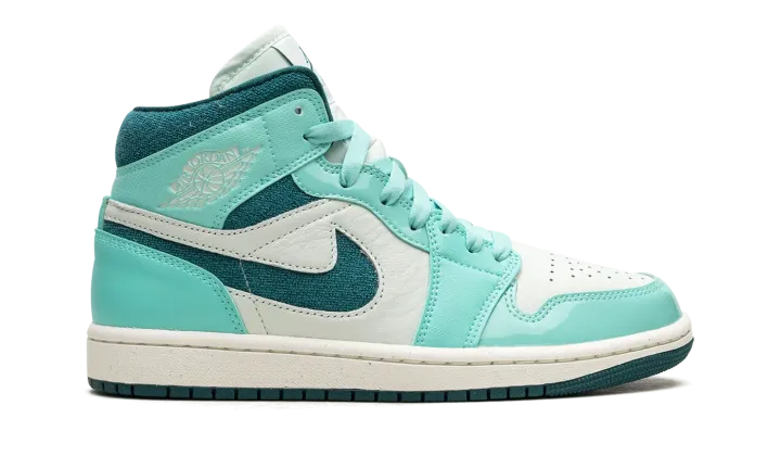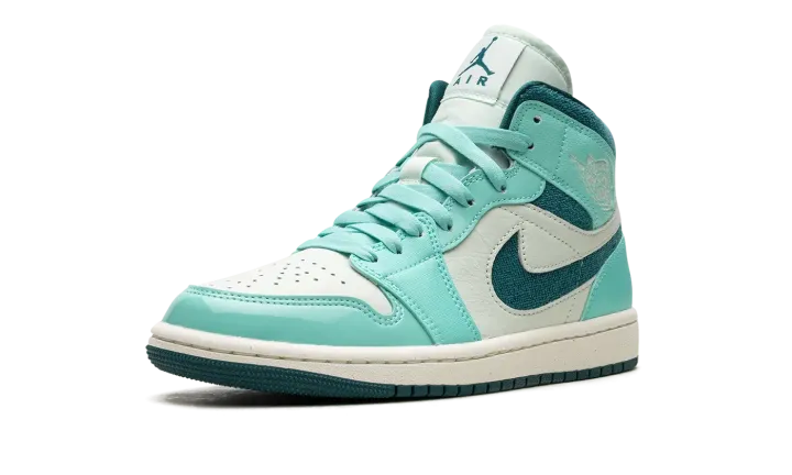 The Women's Air Jordan 1 Mid SE "Bleached Turquoise" is a women's-exclusive colorway of the lifestyle shoe with a summer-ready vibe. A head-turning design, the Jordan 1 Mid SE in "Bleached Turquoise" features a white leather base with Bleached Turquoise leather overlay panels. A Barely Green textile Swoosh matches the design of the color of the material found on the collar. Classic "Wings" branding is located on the collar and a Jumpman is seen on the tongue tag. A Sail rubber midsole and Bleached Turquoise rubber outsole round out the look. Release date: June 20, 2023