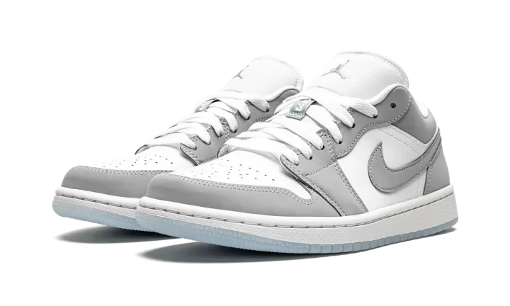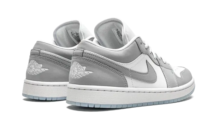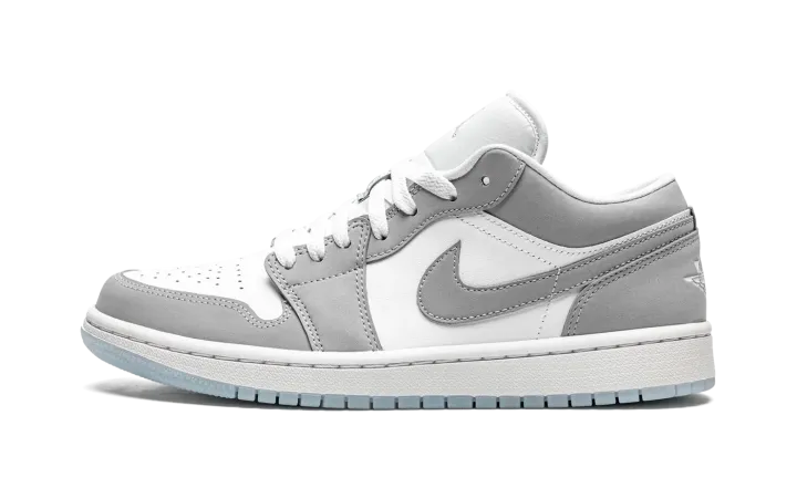 The Women's Air Jordan 1 Low "White/Wolf Grey" is a timeless, low-contrast colorway of the women's version of Michael Jordan's iconic first signature shoe. The model's versatile low-top offshoot was an original offering by Nike along with the high-top Air Jordan 1 in 1985 and remains one of the most popular sneakers on the planet decades after its original release. Here, on the "White/Wolf Grey" colorway, white leather appears on the perforated toe and mid-panel. Contrasting Wolf Grey synthetic nubuck graces the forefoot, eyelets, collar, heel, and Swoosh branding. A white "Wings" logo can be found on the back of the shoe and a Wolf Grey Jumpman is embroidered on the white nylon tongue. Embroidered "23" branding resides on the grey lace overlay incorporated into the design of the white laces on the tongue. A white midsole and contrasting Aluminum-colored rubber outsole complete the look of this easy-wearing look for the Women's Air Jordan 1 Low.