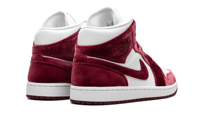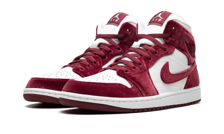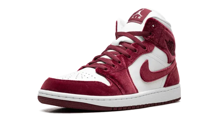 elvet luxury meets heritage style in the Jordan 1 Mid SE Wmns "Red Velvet," a sensational, women's-exclusive mid-top. This special edition sneaker drapes the iconic silhouette in rich, sumptuous red velvet overlays, sharply contrasted by a crisp white leather base. Built for comfort with an encapsulated Air-Sole unit, this sophisticated yet sporty shoe is a perfect statement piece to elevate your look with a touch of unexpected luxury.