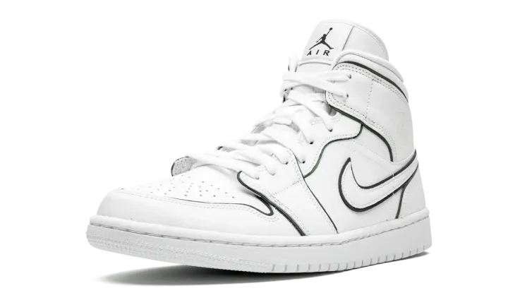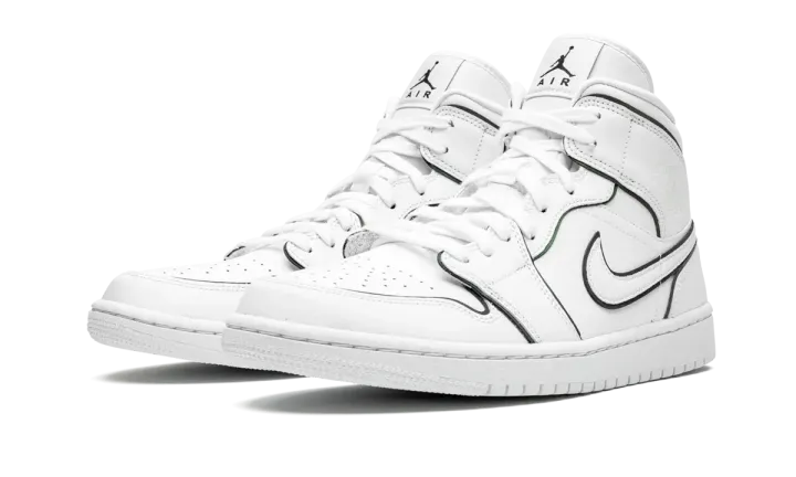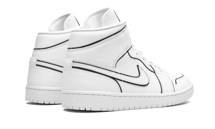 The Women's Air Jordan 1 Mid "Iridescent Outline" is a women's-exclusive edition of the mid-top Jordan 1 with a unique "outlined" construction. The upper is composed of a white leather base and features detailing in the form of a perforated toe, embossed tonal Wings logo on the collar and Swoosh on the mid-panel. Iridescent trimming is seen around each panel in a reflective material that changes color when hit with light. The rest of the women's-exclusive Air Jordan 1 Mid, including the tongue, midsole, and outsole, is finished off in crisp white.