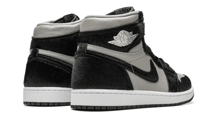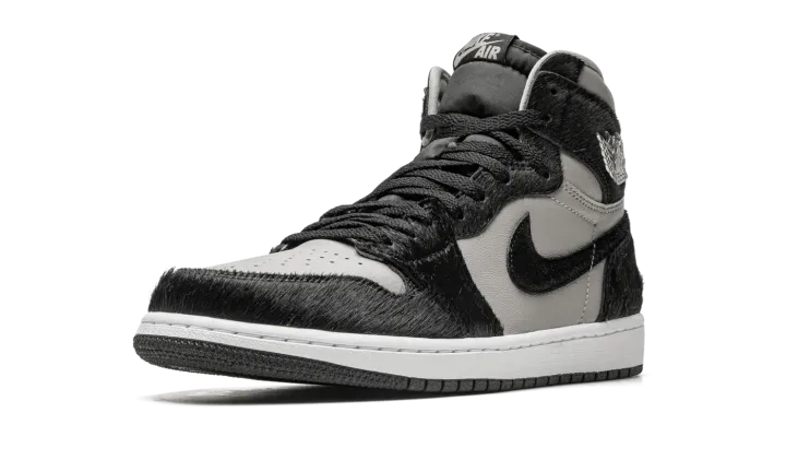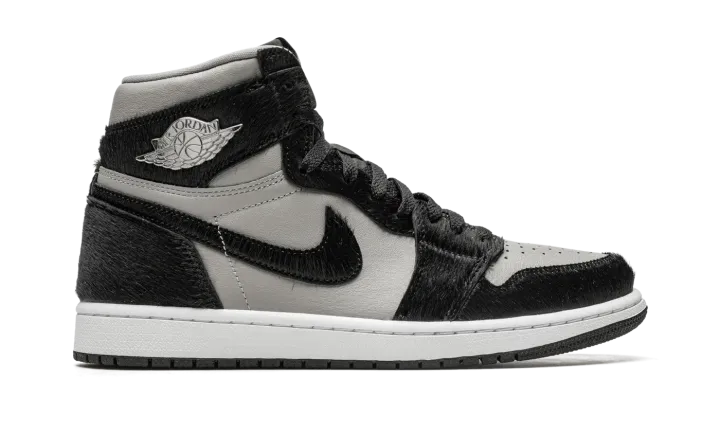 The Women's Air Jordan 1 High "Twist 2.0" is a women's-exclusive version of the classic basketball and lifestyle shoe that updates the popular "Twist" colorway with a new grey leather base. The original Women's Jordan 1 High "Twist" was inspired by the model's original "Black/White" colorway from 1985, but with a, no pun intended, twist: instead of black leather overlays per the original style, the "Twist" incorporated black pony hair panels. The "Twist 2.0" also features black faux pony hair on its design, along with a new grey leather base that replaces the "Twist's" original white leather construction. As for the rest of the shoe's appearance, a Metallic Silver "Wings" emblem is found on the collar while classic "Nike Air" and Swoosh branding appear on the tongue. Underfoot, a white midsole and black rubber outsole complete the look. Release date: December 22, 2022
