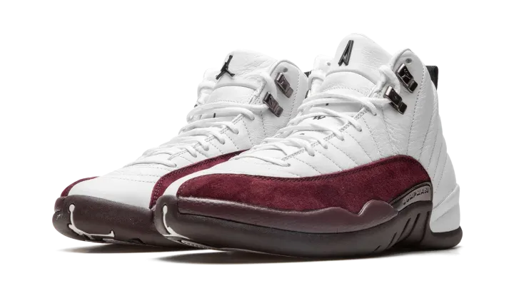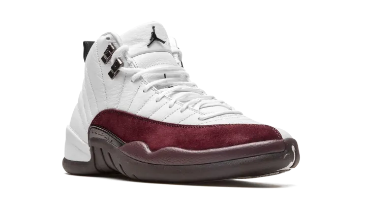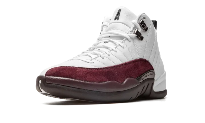 The A Ma Maniére x Air Jordan 12 "White" is a collaboration by the upscale clothing and sneaker boutique that puts a premium spin on the retro basketball shoe. Following A Ma Maniére's Air Jordan 1, Air Jordan 2, Air Jordan 3, and other projects with Jordan Brand, the shop's Jordan 12 updates Michael Jordan's twelfth signature shoe with a white and maroon color scheme. The upper features a white leather construction with a burgundy suede forefoot overlay. Dual Jumpman and "A" branding appears on the tongue of the left and right shoe, respectively. White waxed laces and metallic eyelets add a premium aesthetic. The shoe's burgundy rubber midsole completes the look. The A Ma Maniére x Air Jordan 12 "White" is one of two Jordan 12 colorways by James Whitner's clothing and sneaker shop. Release date: February 24, 2023