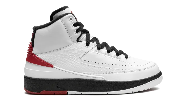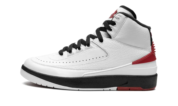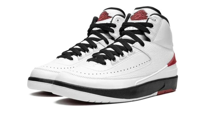 The Women's Air Jordan 2 OG "Chicago 2022" is the women's sizing of the modern reissue of the original colorway of Michael Jordan's second signature shoe. After a handful of special collaborations by Off-White, Union, and many others, the Jordan 2 was officially back in a regular release cycle in late 2021 and throughout 2022. The return of the Jordan 2 "Chicago" is the proverbial "cherry on top" of all of the silhouette's releases. Styled identically from the original Jordan 2 "Chicago" from 1986, the modern version features a white leather construction with perforated detailing on the forefoot. A tonal faux snakeskin overlay is found on the midfoot. Fiery red accents appear on the heel counter below a red "NIKE" logo. The Air Jordan 2's classic "Wings" logo is found on the tongue. The black midsole is paired with a white and red rubber outsole to complete the look of this timeless Jordan 2. Release date: December 30, 2022
