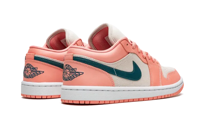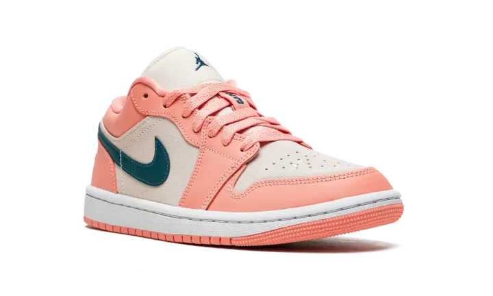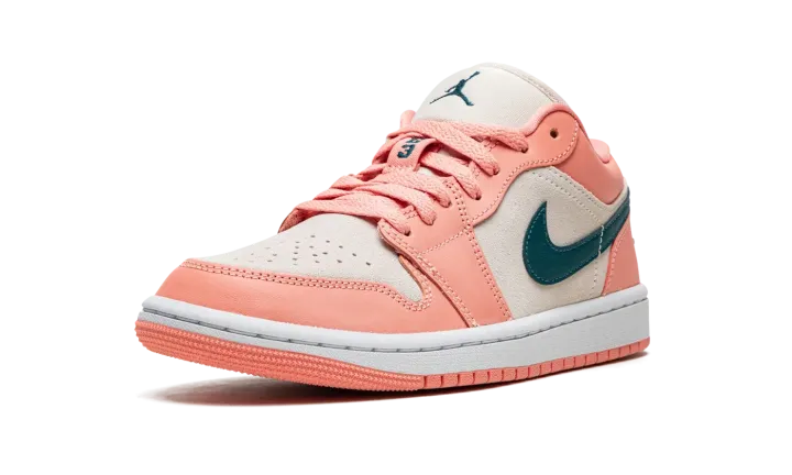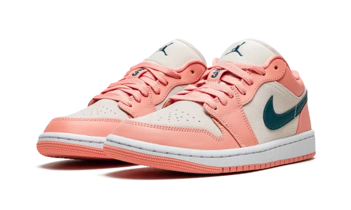 The Women's Air Jordan 1 Low "Light Madder Root" is a women's release of the retro basketball and lifestyle shoe in a fun, colorful look. The "Light Madder Root" combines pink leather overlays with a Light Madder Root, or tan, suede base. A Dark Teal Green leather Swoosh is found on either side of the shoe. The dark green hue also appears on the "Wings" branding embroidered on the heel, the Jumpman on the tongue, and the "23" detailing on the lace overlay. Pink laces, a white midsole, and a pink rubber outsole put the finishing touches on the look.