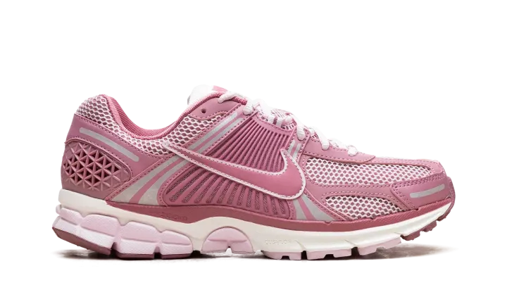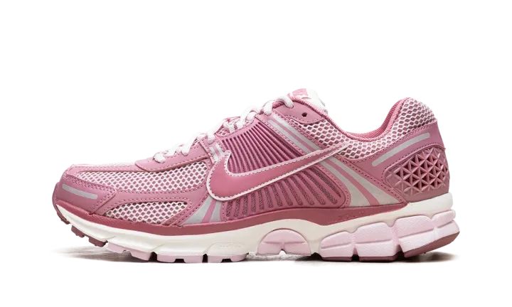 The Nike Zoom Vomero 5 continues its dominance as the essential "dad shoe" turned street favorite. This women's model is dressed in a striking Elemental Pink palette, contrasting warm, vibrant pinks with deep Desert Berry tones for a high-energy look.