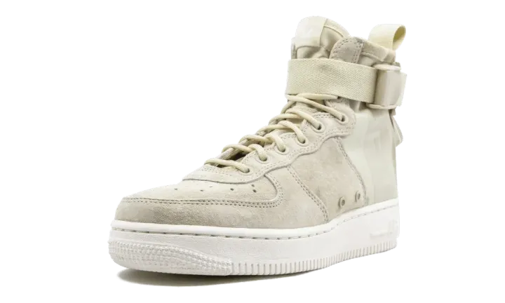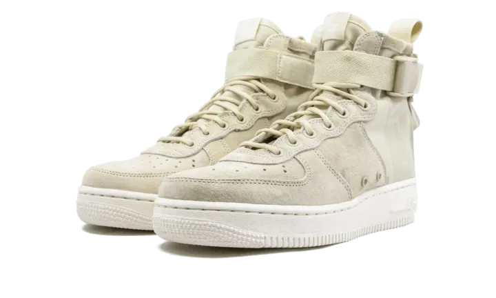 The Nike SF AF1 Mid fuses two of Nike's most iconic shoes for winter, the Special Field Boot and the Air Force 1. Available for women, what was once a boot built for ultimate urban utility has evolved into a mid-top silhouette. It has adjustable ankle straps, premium suede, and ripstop ballistic nylon. The Special Field Air Force 1 Mid also has a double-zipper entry at the heel and text on the lateral side that displays the shoe's technical specifications.