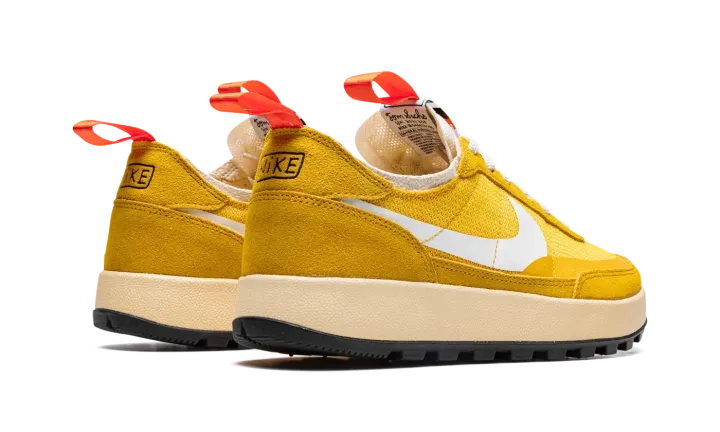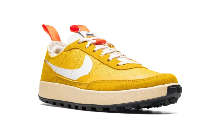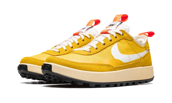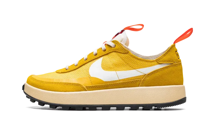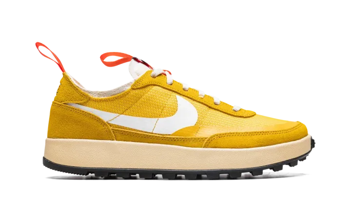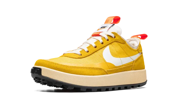 The Tom Sachs x Nike General Purpose Shoe "Dark Sulfur" is a special collaboration between the contemporary artist and Nike on a shoe that's "ordinary for extraordinary people." The first "General Purpose Shoe," or "GPS," for short, was designed by Sachs and Nike and released in June 2022. The model succeeds the duo's previous landmark collaborations on the Mars Yard and Mars Yard 2.0. The "Dark Sulfur," or "Archive," as it's also known as, is the second colorway of the General Purpose Shoe. The sneaker is likened to some of Nike's most timeless designs, particularly the Killshot and Waffle One models. According to Sachs, he set out to create a shoe that functioned as "a tool for everyday life." The upper features a yellow-colored mesh construction with a microfiber collar and grey suede overlays. A white Swoosh is found printed on either side. The shoe sits on a three-piece molded cupsole. In terms of comfort, the cream-colored EVA foam midsole provides a soft ride. Release date: September 1, 2022