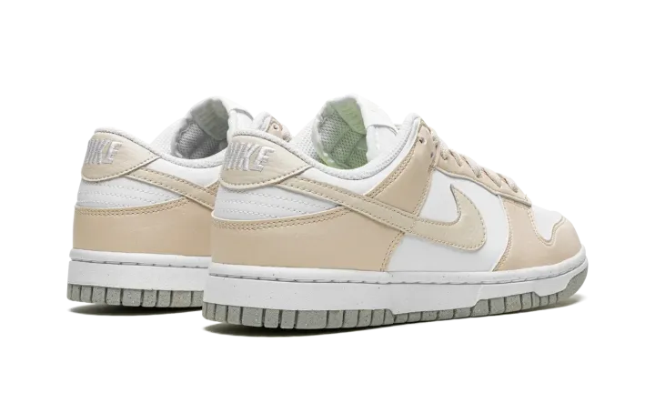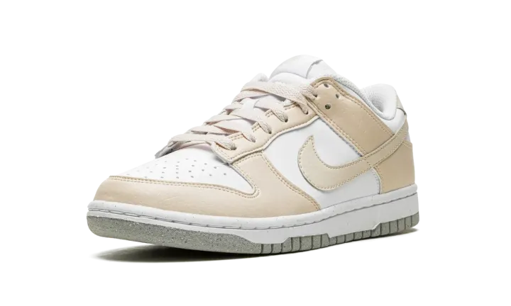 The Women's Nike Dunk Low Next Nature "Light Orewood Brown" is a versatile colorway of the vintage basketball shoe for women constructed from at least 20% recycled content by weight. Nike's "Move to Zero" initiative that aims to reduce its carbon footprint is progressed by the release of the "Light Orewood Brown" Dunk, which is designed in a classic two-tone style. Specifically, the shoe's white leather base is paired with light brown leather overlays. A Light Orewood Brown leather Swoosh resides on either side. A two-tone, white midsole and light brown rubber outsole finish off the appealing Dunk Low for women.