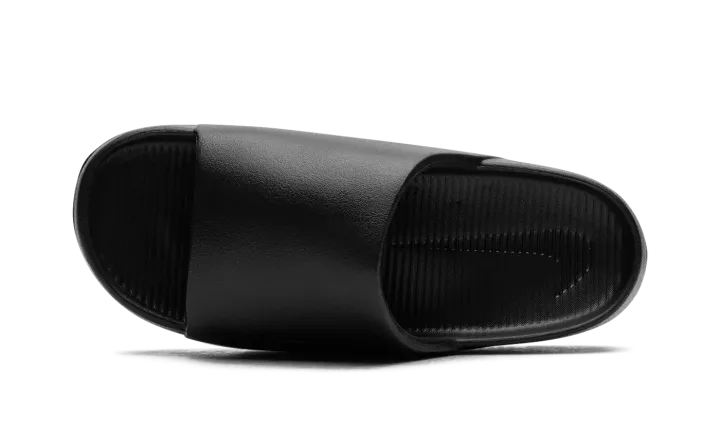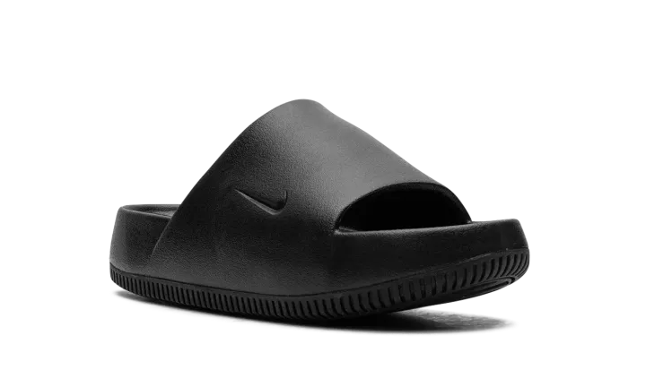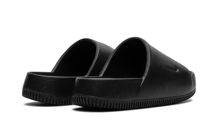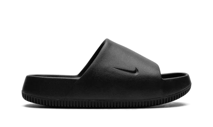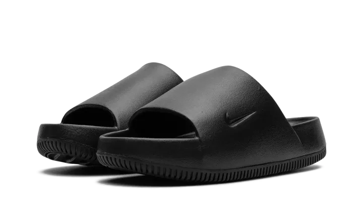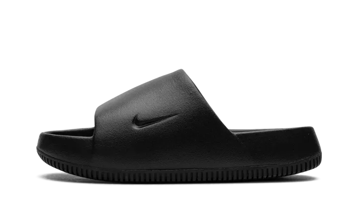 The Women's Nike Calm Slide "Black" is the women's sizing of the versatile, monochromatic black colorway of the comfortable slip-on sandal. The Calm Slide debuted in 2023 in several appealing colorways, including in this "Black" design. The sandal is constructed from a black one-piece foam mold. The midfoot strap that supports the sandal features a debossed Swoosh on the side. A thick foam cushioning footbed provides a comfortable ride. Release date: July 14, 2023