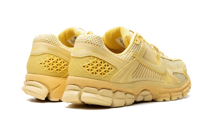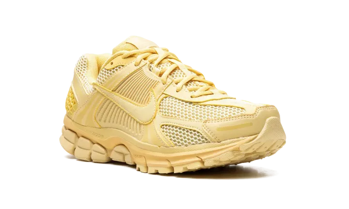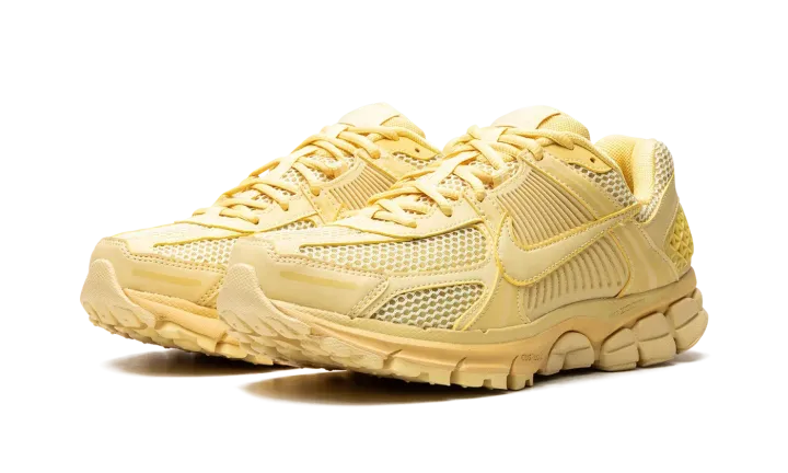 The Women's Nike Zoom Vomero 5 "Saturn Gold" is a women's-exclusive colorway of the retro running shoe with an all-gold-everything look. Designed in Saturn Gold and Lemon Wash, the Zoom Vomero 5 at hand has a head-turning gold appearance that draws attention rather easily. Both gold hues appear on the shoe's mesh, leather, and TPU construction. A gold Swoosh can be found on the sides, while "Zoom Vomero 5" branding appears on the tongue tag. Zoom Air cushioning is encased within the aged foam midsole for all-day comfort. Release date: March 1, 2024