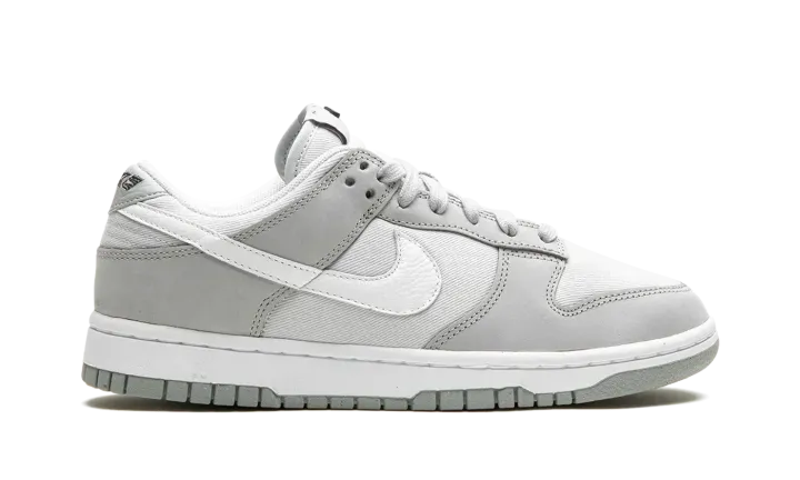 The Women's Nike Dunk Low LX "Light Smoke Grey" is a women's-exclusive colorway of the retro basketball shoe with a versatile design. The upper features Light Smoke Grey nubuck leather overlays on a grey canvas base. A white leather Swoosh appears on the sides while classic "Nike" branding is embroidered on the heel. More Swoosh and "Nike" detailing can be found on the tongue. Underfoot, a white midsole and grey outsole finish off this clean Dunk Low for women.