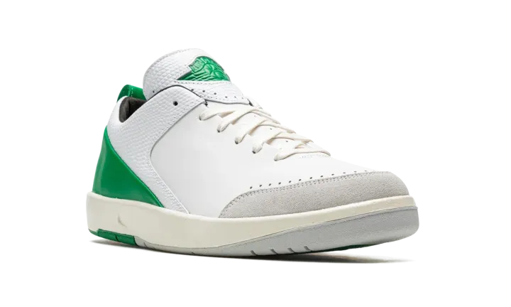 The Nina Chanel Abney x Women's Air Jordan 2 Low "White Malachite" is a collaboration between the popular contemporary artist and Jordan Brand on an elegant colorway of Michael Jordan's second signature shoe. The Jordan 2 was brought back from the vault in late 2021 when Off-White collaborated with Jordan Brand on two retro-inspired colorways. The model was then included in several other high-profile projects, including with the likes of Union and Nina Chanel Abney. Here, Nina's take on the Jordan 2 pushes forward a vintage-luxury look. Specifically, the upper features a white leather base with tonal faux reptile print overlays and grey suede on the toe. Contrasting green leather is found on the heel, on the pull tab, and on the "Wings" logo on the tongue. Giving the shoe a decidedly vintage look, the laces and midsole are rendered in cream. Release date: July 8, 2022