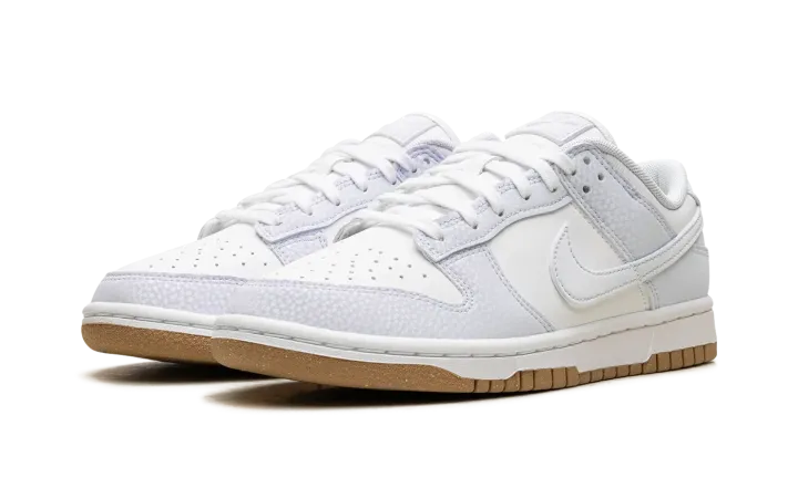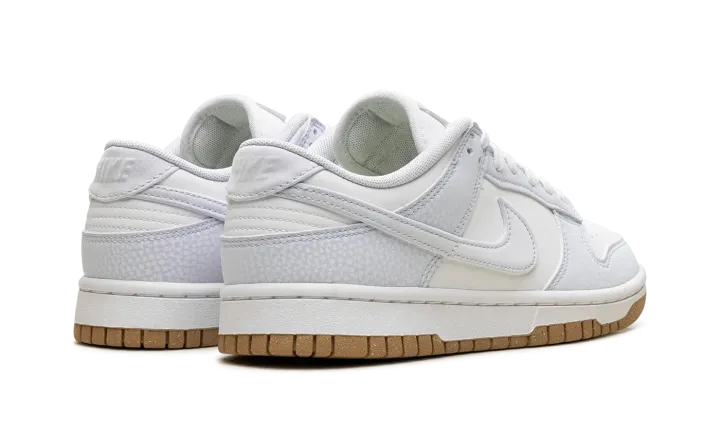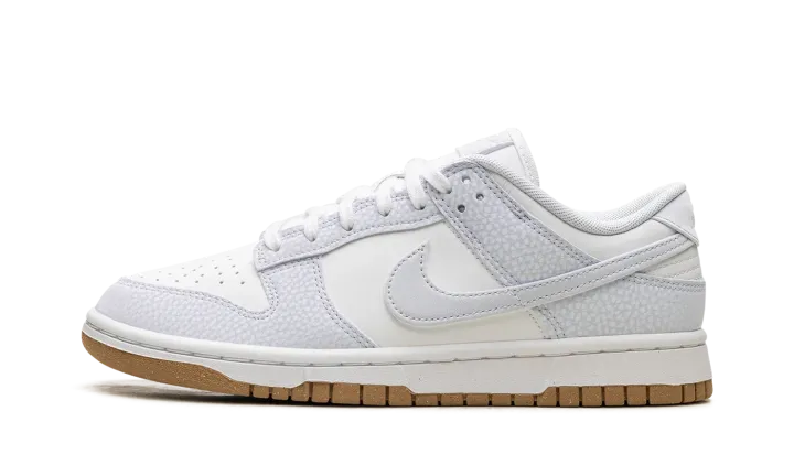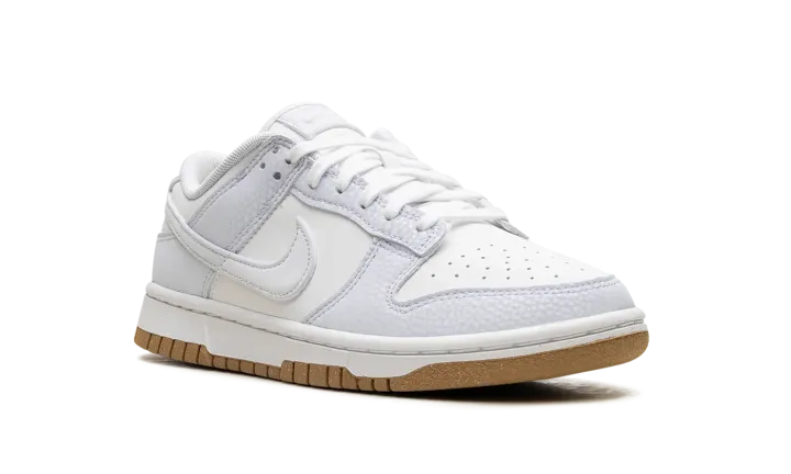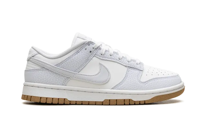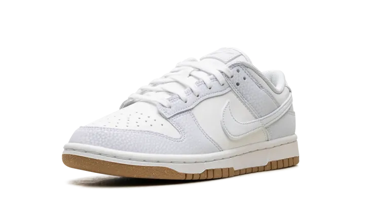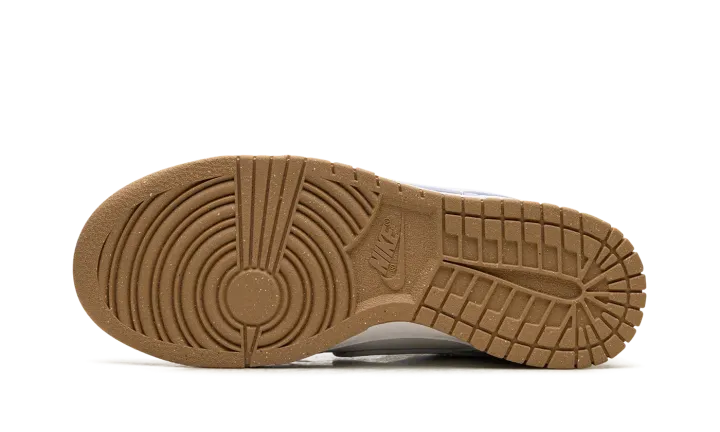 The Nike Dunk Low "Football Grey/Gum" is a colorway of the lifestyle shoe made with an environmentally conscious build. The shoe features a white leather base and Football Grey leather overlays and Swoosh branding. A classic "Nike" logo is embroidered on the heel, while a "Nike" logo is paired with a Swoosh on the tongue tag. Underfoot, the outsole is constructed of recycled Nike Grind material. Release date: Spring 2024
