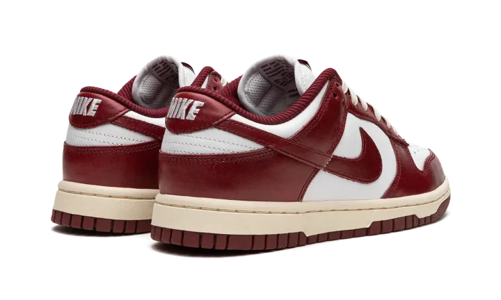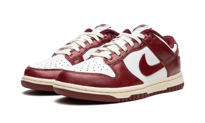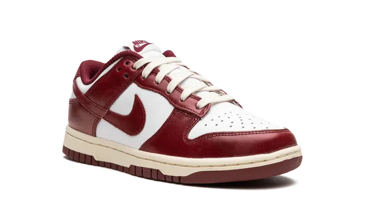 The Women's Nike Dunk Low PRM "Team Red" is a women's-exclusive colorway of the classic basketball shoe with an aged vibe. The "Team Red" Dunk Low gives the popular and iconic silhouette a timeless appearance with a white leather upper contrasted with Team Red leather overlays and Swoosh branding on the sides. "Nike" branding is found on both the tongue tag and heel. A pre-aged midsole gives the shoe a decidedly vintage look. Release date: April 21, 2023