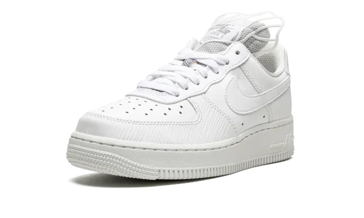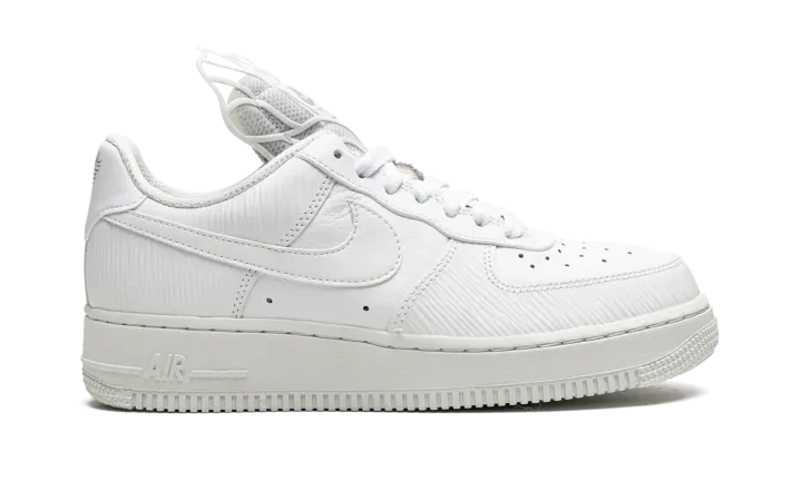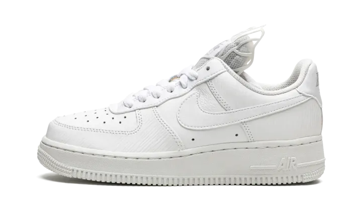 The Women's Nike Air Force 1 Low "Goddess of Victory" is a women's-exclusive colorway of the retro basketball and lifestyle shoe that honors the Greek mythos of its namesake. The "Goddess of Victory" is based on the Air Force 1 "White on White" colorway in that it features a predominantly monochromatic white appearance, but with a notable design modification. The top of the tongue's design mirrors the wings of the Goddess of Victory with its sheer exoskeleton. Nike designs the forefoot, collar, and heel overlays in textured Epi leather. The perforated toe, mid-panel, eyelet panel, and Swoosh appear in smooth white leather. The "Nike Air Force 1" branding on the tongue tag is displayed in low-contrast, light grey lettering. A white rubber midsole and white outsole finish off the look of this creative colorway for the Nike Air Force 1.