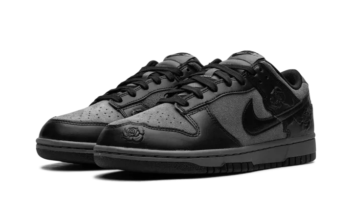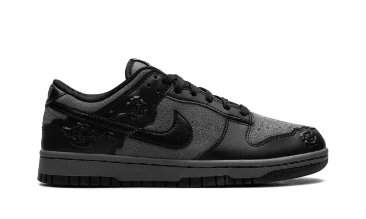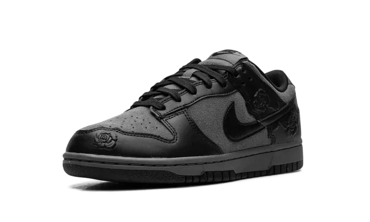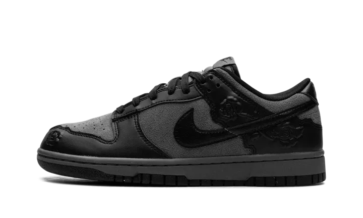 The Nike Dunk Low Embossed Rose Iron Grey / Black is a fresh iteration of the classic Dunk silhouette, known for its blend of modern style and timeless appeal. This particular model features an eye-catching embossed rose pattern on the leather upper, adding a textural depth to the shoe that distinguishes it from more traditional versions.