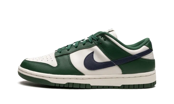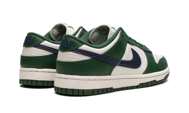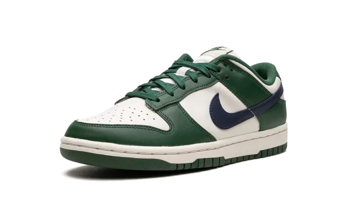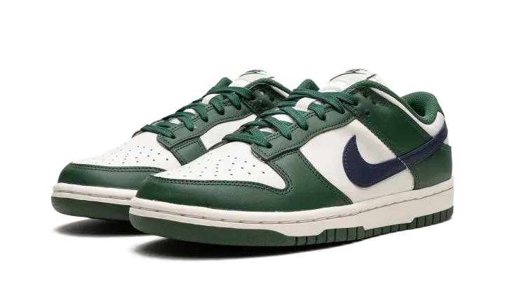 The Women's Nike Dunk Low "Gorge Green" is a women's-exclusive colorway of the vintage basketball shoe that's reminiscent of the model's "Spartan Green" design, but with a few subtle differences. The "Gorge Green" features the same white-and-green color block as the "Spartan Green" Dunk, but with a navy leather Swoosh on the sides instead of a green Swoosh. More specifically, the "Gorge Green" has a white leather base and Gorge Green leather overlays. Navy "Nike" branding is embroidered on the heel and printed on the tongue. An off-white rubber midsole and green outsole complete the look. Release date: May 20, 2023