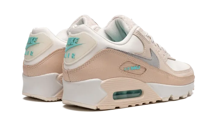 The Women's Nike Air Max 90 "Mama" is a women's-exclusive colorway of the vintage running shoe with a premium design. The always popular, always classic Air Max 90 is treated to an understated yet appealing new look on the "Mama" colorway, a style that features a silver pendant hang tag with "MAMA" and Swoosh hits. The shoe's upper is dressed in various white and Sail hues. Subtle pops of turquoise appear on the "Air Max" branding window on the lateral side, on the "Nike Air" logo on the heel, and on the "Nike" insignia on the fleece tongue. Release date: October 1, 2022