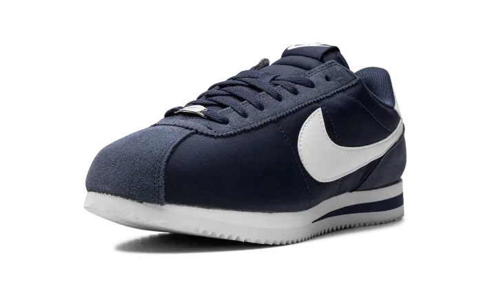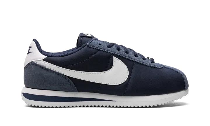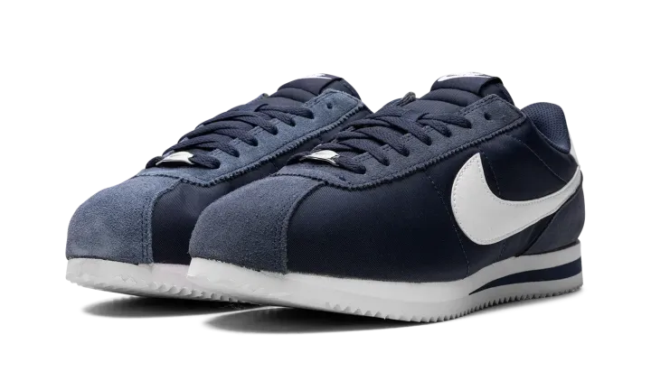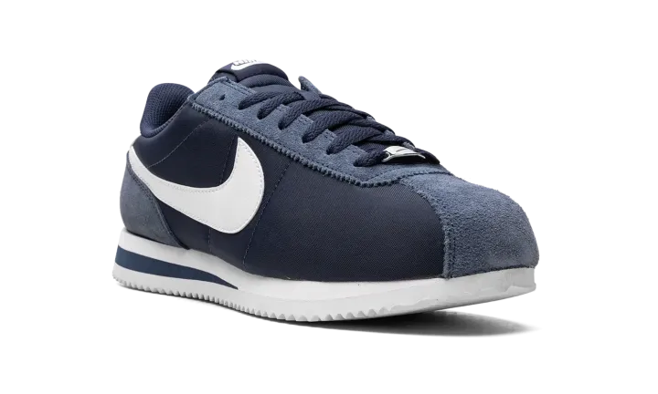 The Women's Nike Cortez "Midnight Navy" is a women's-exclusive colorway of the retro running shoe with a navy-based appearance. Since debuting in 1972, the Cortez has been among the most iconic and revered sneakers in the game. Today, the Cortez is beloved for its timeless design and comfort. The colorway features a Midnight Navy nylon construction with tonal suede overlays on the toe, eyelets, and heel. An oversized white leather Swoosh is seen on the sides. A Midnight Navy "Nike" logo is paired with a Swoosh on the heel and white "Nike" and Swoosh logos are found on the tongue. Release date: July 28, 2023
