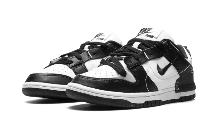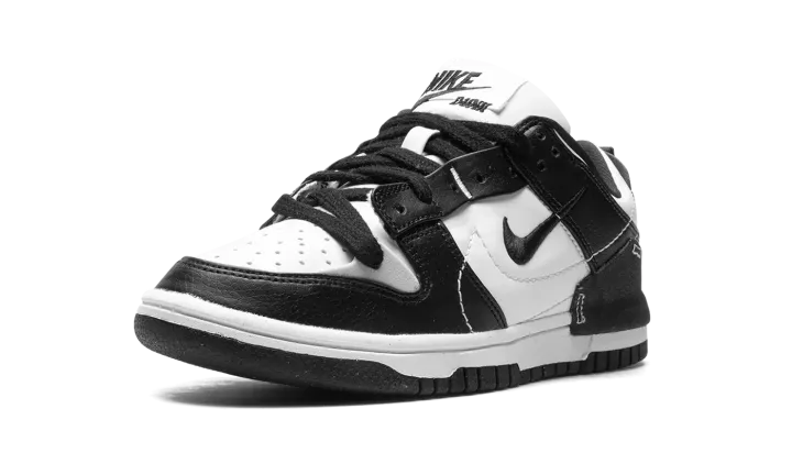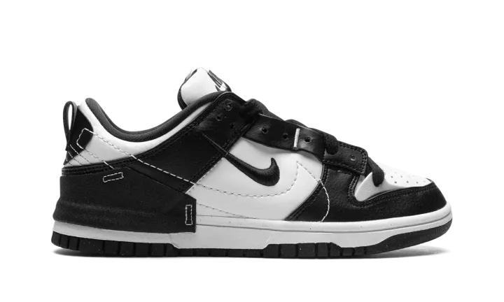 The Women's Nike Dunk Low Disrupt 2 "Panda" is a women's-exclusive colorway of the remodeled version of the classic sneaker. The Women's Dunk Low Disrupt 2 recalibrates the Dunk's original design, and represents the second edition of the contemporary Dunk Disrupt model. The shoe's appearance is moderately different from the original Dunk, but no less wearable, especially in the popular "Panda" colorway. The upper features a white leather base with contrasting black leather overlays. A layered panel on the eyelets gives the shoe a modern vibe that nods to the "double" aesthetic found on Sacai and Nike's footwear collaborations. A small black embroidered Swoosh is found next to the outline Swoosh on the sides. An oversized black leather panel on the heel continues the shoe's progressive-looking design.