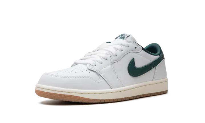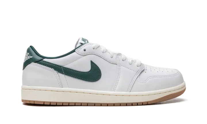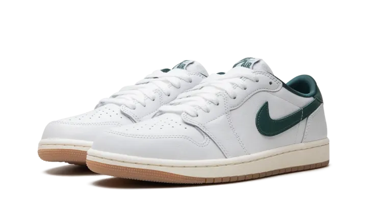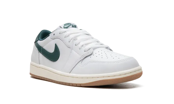 Capture timeless style with the Jordan 1 Retro Low OG Wmns "Oxidized Green." This women's exclusive offers a refreshing, natural twist on the original low-cut icon. Clean white leather is elegantly contrasted by a unique oxidized green Swoosh and heel tab, giving it a slightly aged, vintage feel. Combining heritage-inspired design with a lightweight, cushioned feel, this sleek sneaker adds a sophisticated pop of color to any casual outfit.