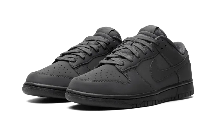 The Women's Nike Dunk Low "Cyber" is a women's-exclusive colorway of the retro basketball shoe with a reflective finish. Drawing inspiration from cyberpunk aesthetics, the Dunk Low "Cyber" has a synthetic leather construction in an Anthracite hue. While appearing to be simply a matte black colorway at first, the side Swoosh, toe, eyestay, and ankle panels, and heel tab are reflective, and shine when exposed to light in the dark. A "Nike" embroidery is found on the heel, while "Nike" and Swoosh logos appear on the tongue tag. An Anthracite midsole and outsole complete the look of the monochromatic yet reflective colorway. Release date: January 12, 2024