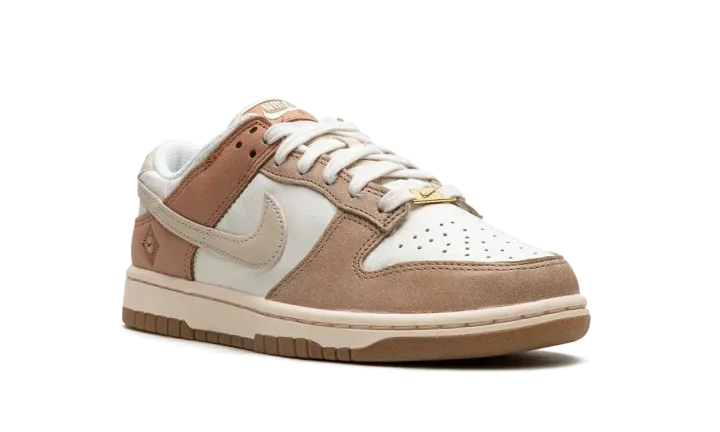 The Women's Nike Dunk Low "Australia" is a women's-exclusive colorway of the retro basketball shoe dedicated to Nike's Australia sector. The "Australia" Dunk Low features a white leather base with leather overlays and Swooshes in orange and pink hues. A debossed "Nike Australia" logo appears on the lateral side of the heel while branding specific to Australia appears on the tongue tag. A gold lace dubrae completes the look.
