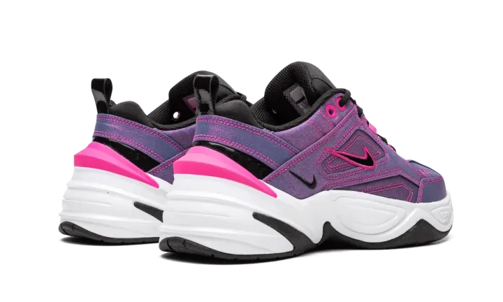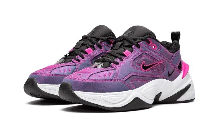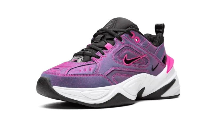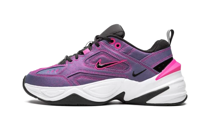 The Nike M2K Tekno SE "Laser Fuschia" is a women's shoe that reinvents the "dad shoe" craze with next-level vibrancy. With inspiration from the classic Air Monarch, the M2K Tekno features a chunky design and a futuristic feel thanks to its sharp lines. This outlandish colorway features an iridescent fuschia upper perfectly paired with black accents and hot pink on the stitching, Swoosh outline, heel, and insole. The injected Phylon foam midsole provides stark contrast in white and a black rubber outsole finishes the shoe design.