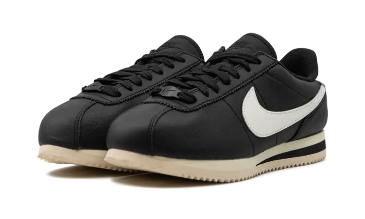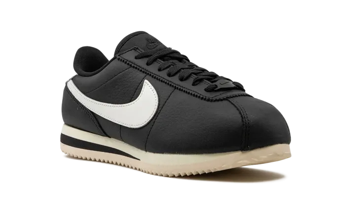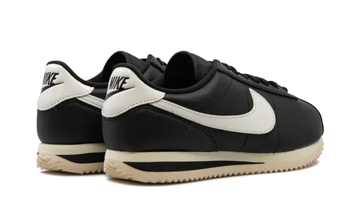 The Women's Nike Cortez '72 "Black/Sail" is the women's sizing of the retro running shoe in a classic colorway. Based on a version of the Cortez from the early 1970s, the Cortez '72 has an old school look made with modern materials. The upper features a black leather construction and has a Sail-colored leather Swoosh on the sides. A "Nike" logo is paired with a Swoosh on the Sail leather heel tab. More "Nike" branding is found on the tongue. Underfoot, an pre-aged foam midsole completes the look. Release date: November 8, 2023