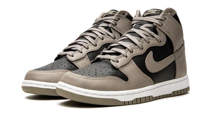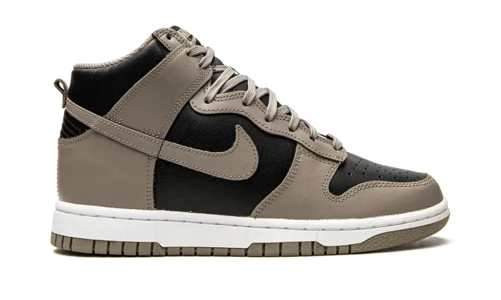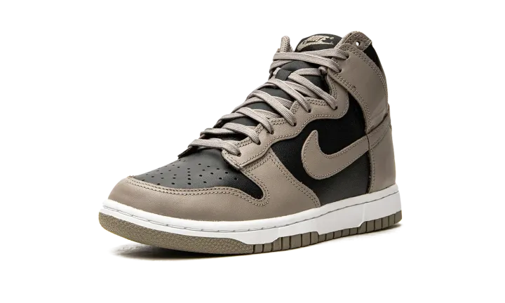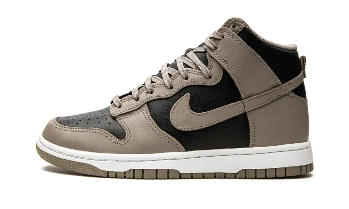 The Women's Nike Dunk High "Moon Fossil" is a women's-exclusive lifestyle colorway of the shoe that originally debuted in 1985. A December 2021, the "Moon Fossil" is a versatile look for the former college basketball shoe worn by the country's top programs in the '80s, including Michigan, St. John's, and Kentucky, among others. Details include a black leather base with Moon Fossil-colored leather overlays and Swoosh branding. Both the laces and interior lining are also in Moon Fossil. Other design components include taupe-colored "Nike" and Swoosh branding on the tongue tag, a black tongue, and a Moon Fossil-colored leather pull tab on the heel. A two-tone, white midsole and Moon Fossil outside complete the look. Release date: December 28, 2021