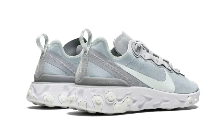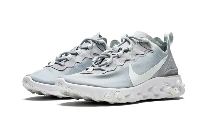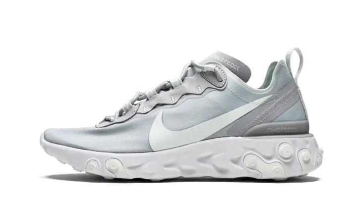 The Women's Nike React Element 55 "Wolf Grey" sports a smooth neutral appearance for maximum versatility. Lightweight and durable, the React Element 55 features an oversized white Swoosh contrasting the muted Ghost Aqua tone across the textile upper. Additional details include exposed stitching on the heel, light grey paneling across the upper and tongue, and a quick lace system with tonal strings. Nike's React foam sole with contrasting cream plugs provides a responsive cushioning for all-day comfort.