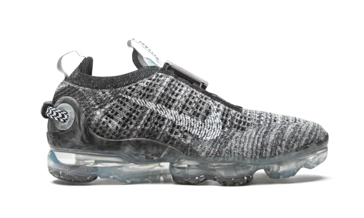 The Women's Nike Air VaporMax 2020 "Oreo" is the women's version of the lifestyle shoe by Nike in a classic black-and-white based colorway. The Air VaporMax 2020 features several design components that enhance the shoe's wearability, including adding Nike's FlyEase system that allows for easy on-off access. The shoe's Flyknit upper is composed of a breathable black, white, and grey recycled polyester material. A painted white Swoosh appears on both sides. Underfoot, the Air VaporMax 2020 for women sits on a translucent VaporMax sole built from at least 75% recycled TPU.