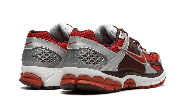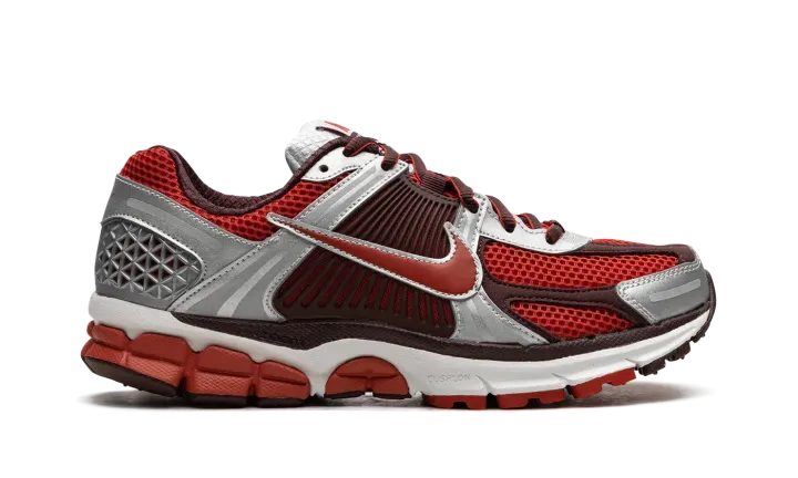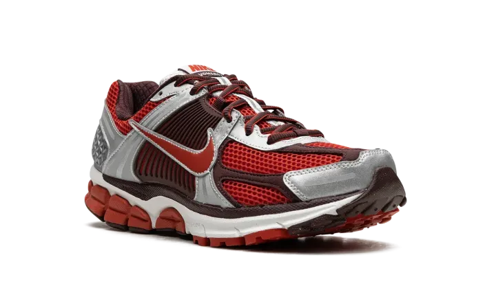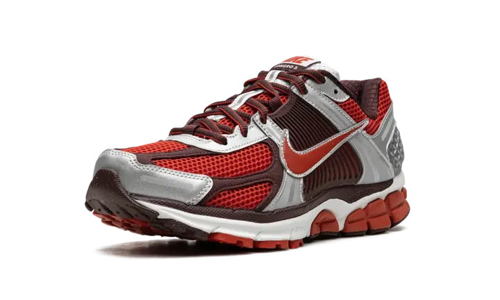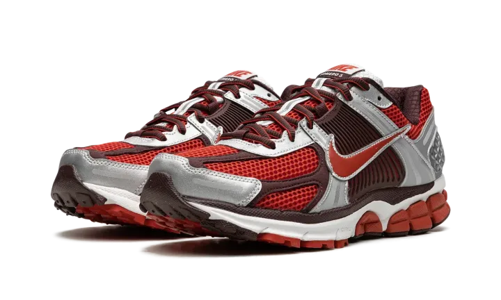The Nike Zoom Vomero 5 "Team Red" is a great look for the retro running shoe with a unique and eye-catching red and silver color scheme. The Nike Zoom Vomero 5 was originally released in the early 2010s before it was brought back in late 2022 and early 2023 as part of the Y2K-era sneaker trend. The colorway features a Team Red mesh construction with Metallic Silver leather overlays. A red Swoosh appears on the sides. "Nike Vomero" detailing is seen on the tongue.