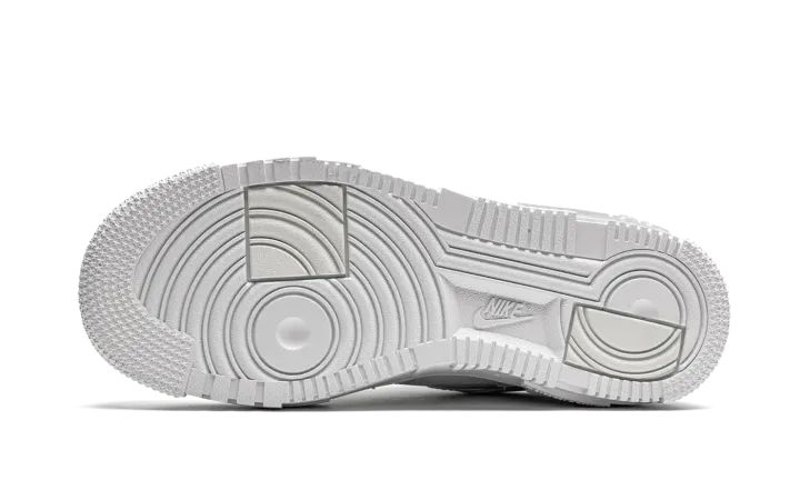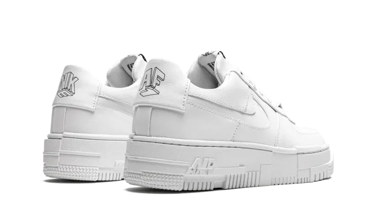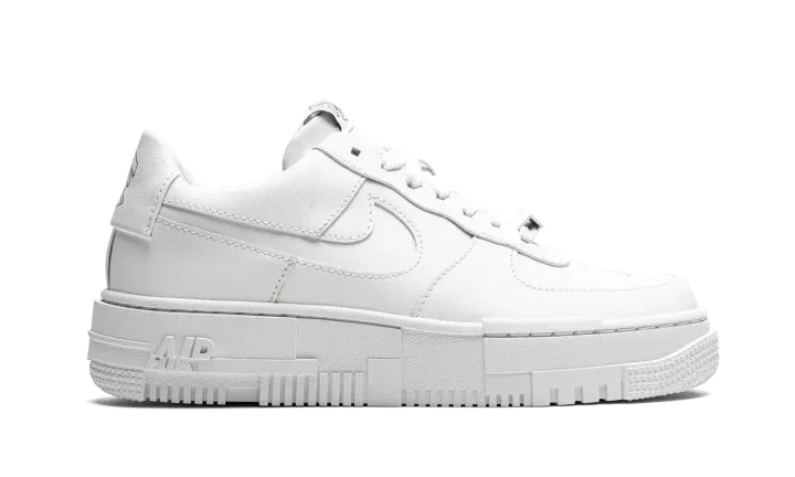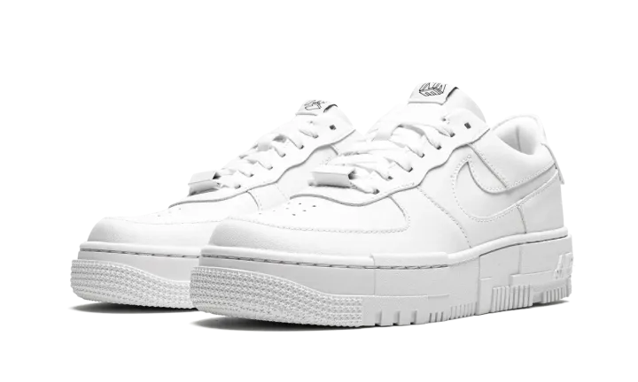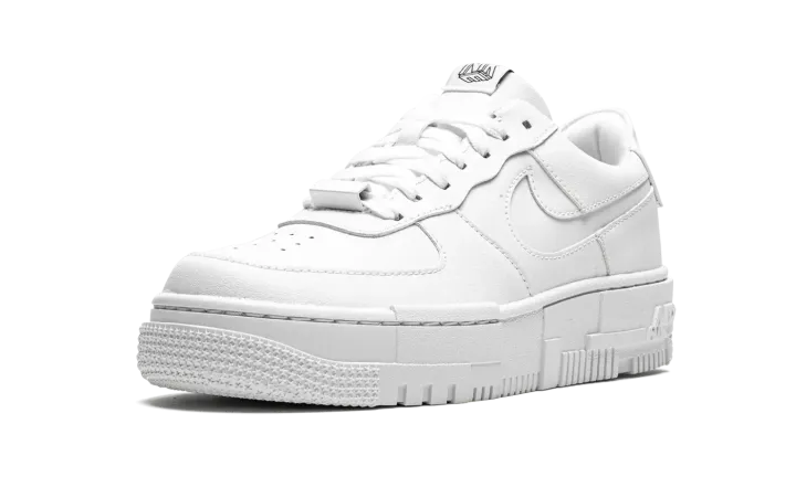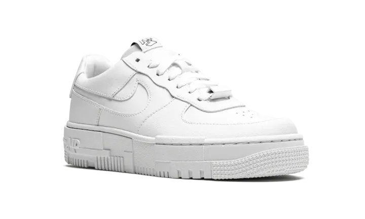 The Women's Nike Air Force 1 Pixel "Triple White" uses subtle pixel detailing to update the iconic model. This modified AF1 is highlighted by the mashup of pixelated detailing on the midsole, as well as oversized heel tabs and square-shaped lace eyelets. Taking things a step further, the branding on the tongue and heel tab sport geometric "NIKE" and "AF1" graphics. This Nike Air Force 1 "Pixel" comes in a all-white colorway and is offered in women's sizing.