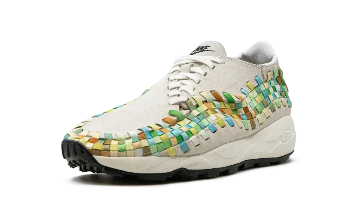 The Nike Air Footscape Woven "Rainbow" is a colorway of the unique-looking shoe with a multicolor woven pattern on its design. Originally released back in 1996, the Air Footscape is one of the most unique running shoes in Nike's history. The Air Footscape Woven combines elements of both the Nike Air Footscape and Nike Air Woven models, resulting in a bold lifestyle sneaker. Here, the "Rainbow" colorway has a Summit White suede upper with an asymmetrical, rainbow-like, multicolor woven pattern on the sides, and an asymmetrical lacing system in white. "Nike" and Swoosh branding are embroidered tongue and heel, respectively. Underfoot, a white midsole and black waffle pattern outsole complete the look. Release date: February 2, 2024